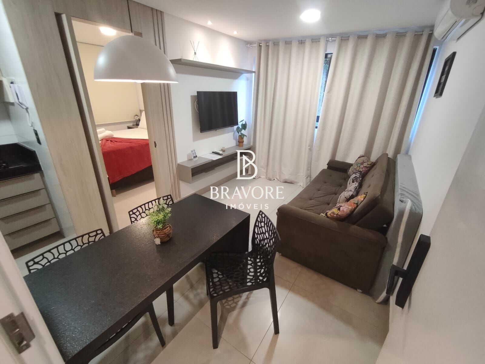 O apartamento possui 28 m² muito bem distribuídos, com uma suíte confortável equipada com cama queen, além de sala de estar com sofá-cama e Smart TV, criando um ambiente funcional e acolhedor. A cozinha é totalmente equipada e o imóvel conta ainda com Wi-Fi e ar-condicionado, oferecendo praticidade e conforto para o morador.